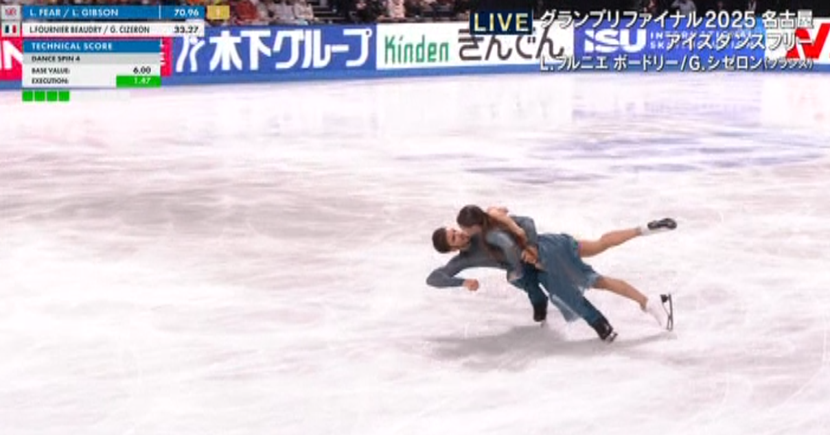 4年前大阪でのグランプリファイナルに、ネイサンもパパシゼも出ることが決まっていたため初めての遠征に行こうとチケットを取ったもののコロナであえなく中止。ネイサンの競技演技を生で見ることなく終わってしまったのが返す返すも残念。その後、北京五輪で金メダルを取ったパパシゼ、ネイサンは引退し、もう見ることはかなわないなーと思っていたところに、カナダのローレンス(ロロ)とカップルを組み復帰してきたギヨーム。
