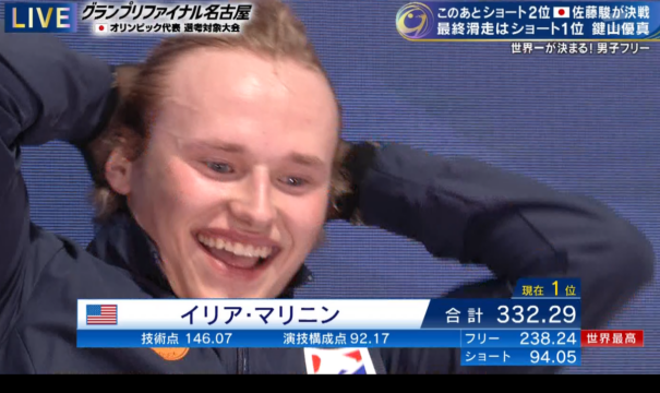本当に圧倒的でした。神でした。ショートで14点差つけられようとも(1位ゆまちと3位マリニンくんのSP点差)、フリーで30点差をつけて勝てるという、まさに「絶望」とはマリニンくんのことではないか…。